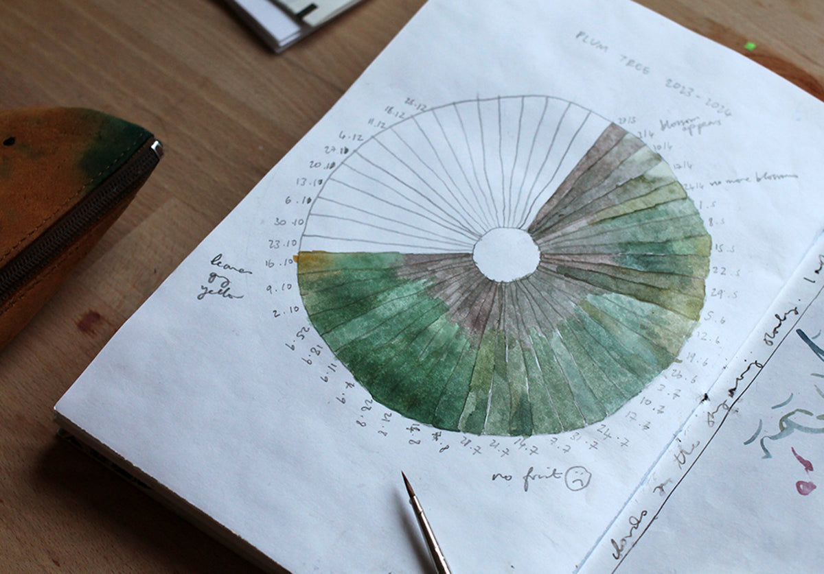 by regularly filling your journal with pressed leaves, blossom paintings, muddy marks and insect paths.